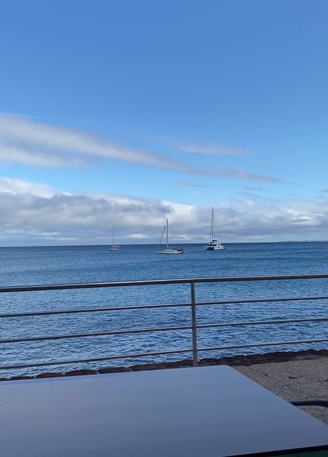 The video depicts a view of the ocean from what appears to be a restaurant or seaside establishment