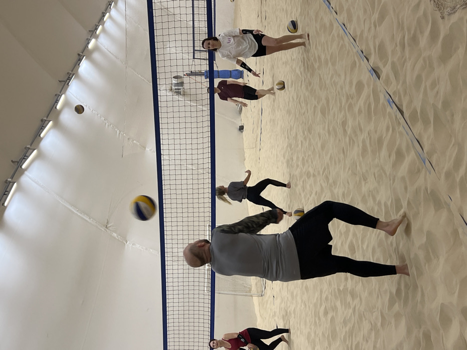 People play beach volleyball indoors