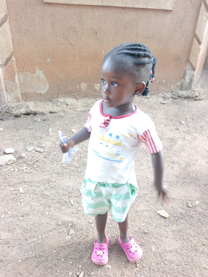 A young child stands on an unpaved, gravelly dirt ground in Akwanga, Nigeria
