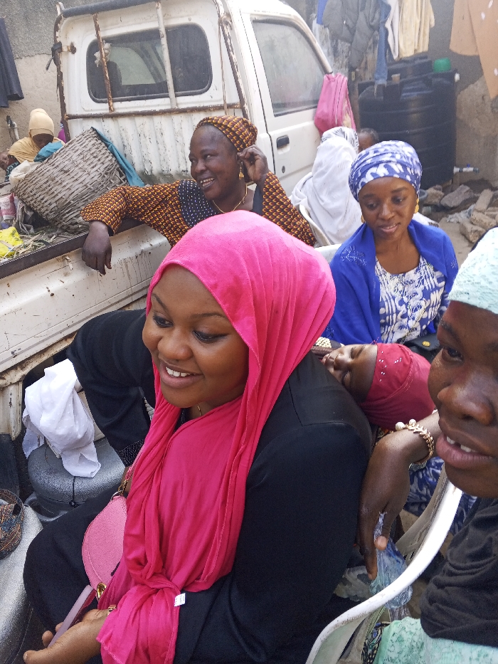 - "The image depicts a crowded outdoor scene in Hotoro North, Nigeria, featuring multiple women gathered around and within the bed of a white pickup truck" by FM-5ORul1, licensed under CC BY 4.0