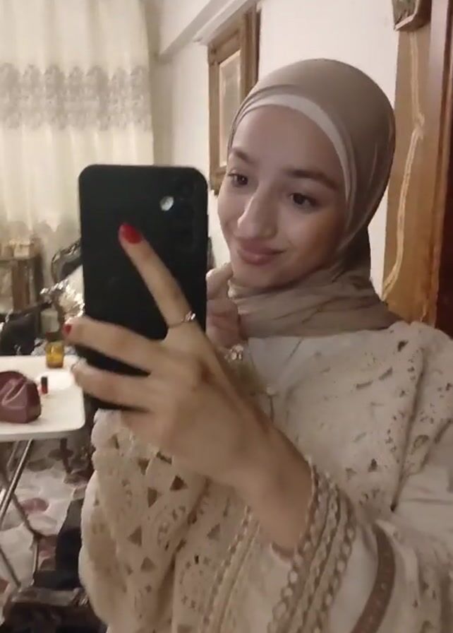 - "A person with fair skin, wearing a light beige hijab and a lace top, is taking a selfie in what appears to be a home interior" by FM-qryOW2, licensed under CC BY 4.0