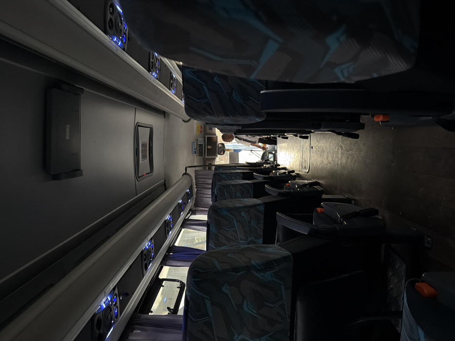 - "The image displays the interior of a passenger coach bus, captured from a central aisle perspective looking forward towards the driver's compartment" by FM-5CNxB2, licensed under CC BY 4.0