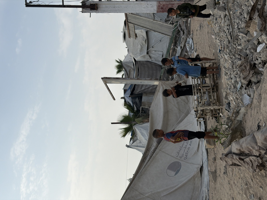 - "This image depicts five young boys in the City of Gaza, Palestinian Territory, within a desolate, rubble-strewn environment characteristic of a makeshift settlement or damaged urban area" by FM-PSI0J3, licensed under CC BY 4.0