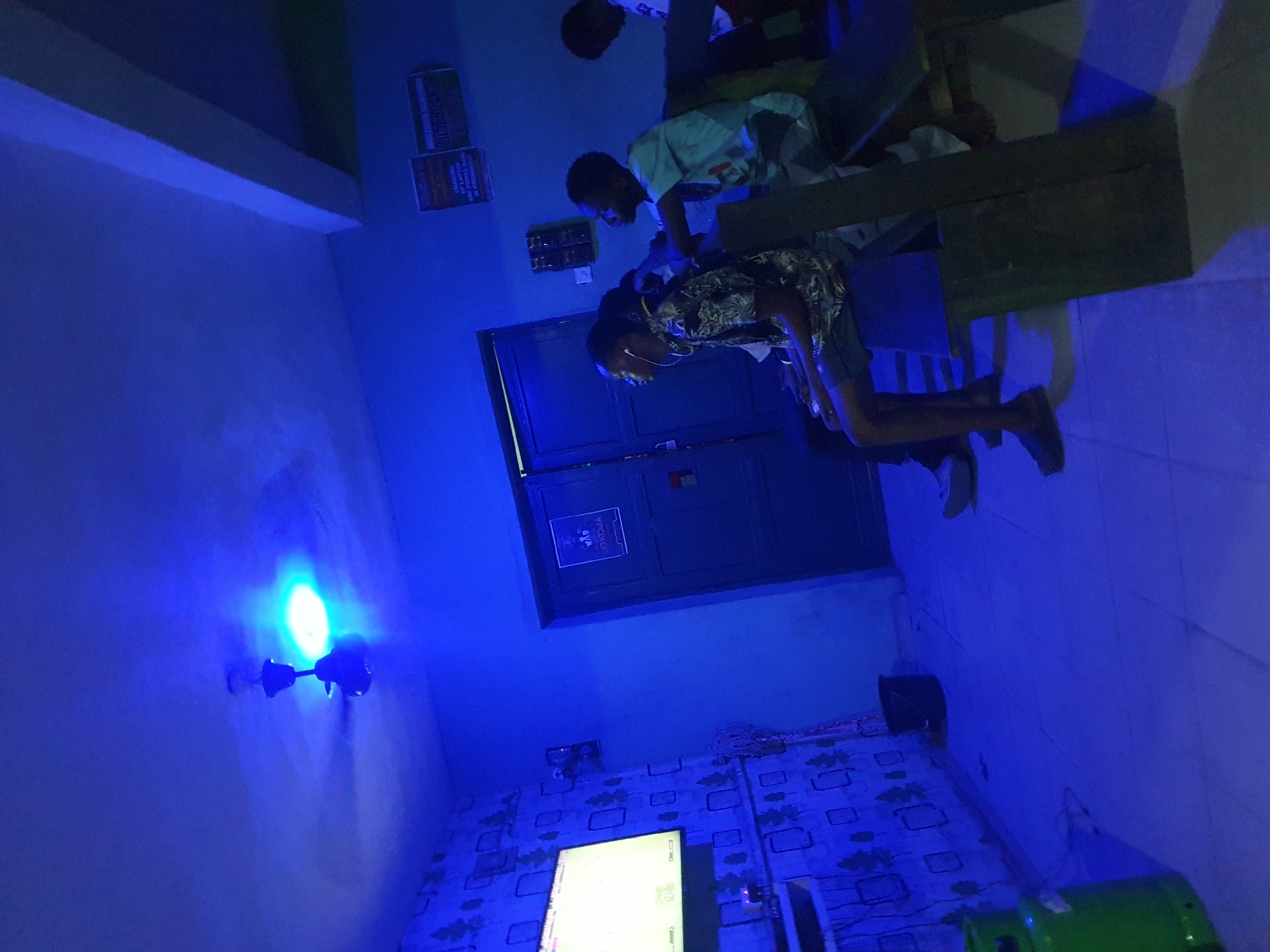 - "The scene depicts the interior of a dimly lit room, saturated with a strong blue artificial light, identified as "WAR LOKOJA" by a sign on a rear door, located in Lokoja, Nigeria" by FM-V3gKq1, licensed under CC BY 4.0