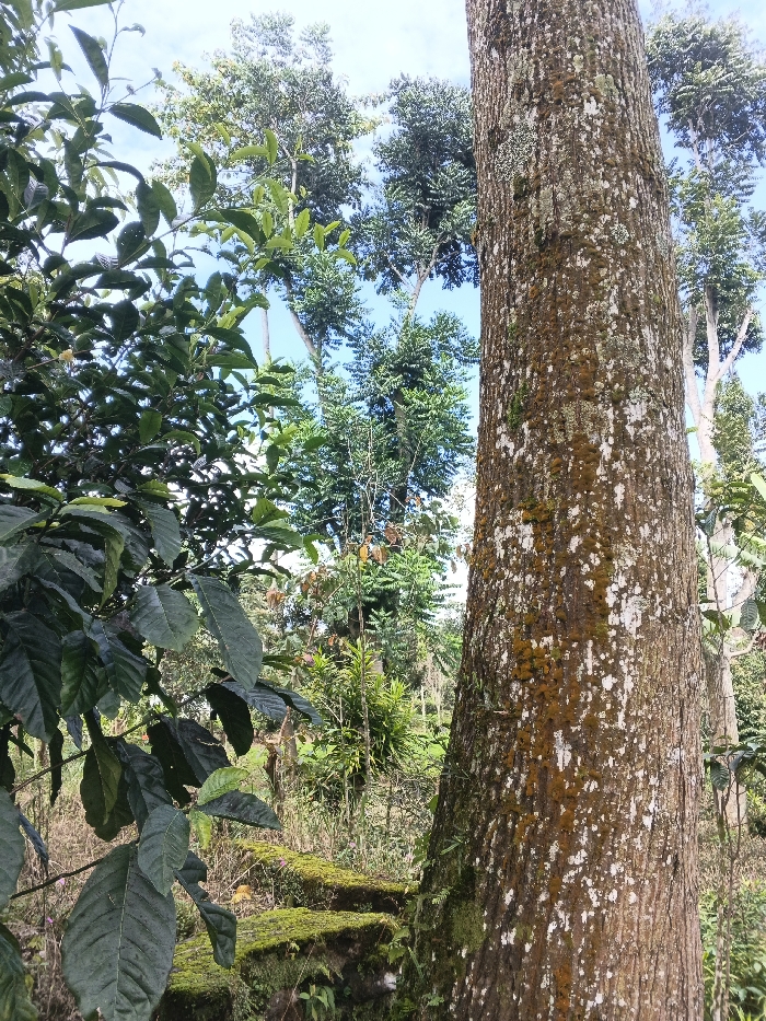 - "A lush, green landscape features a thick tree trunk dominating the right side, its bark mottled with white and orange patches" by FM-TSBvr2, licensed under CC BY 4.0