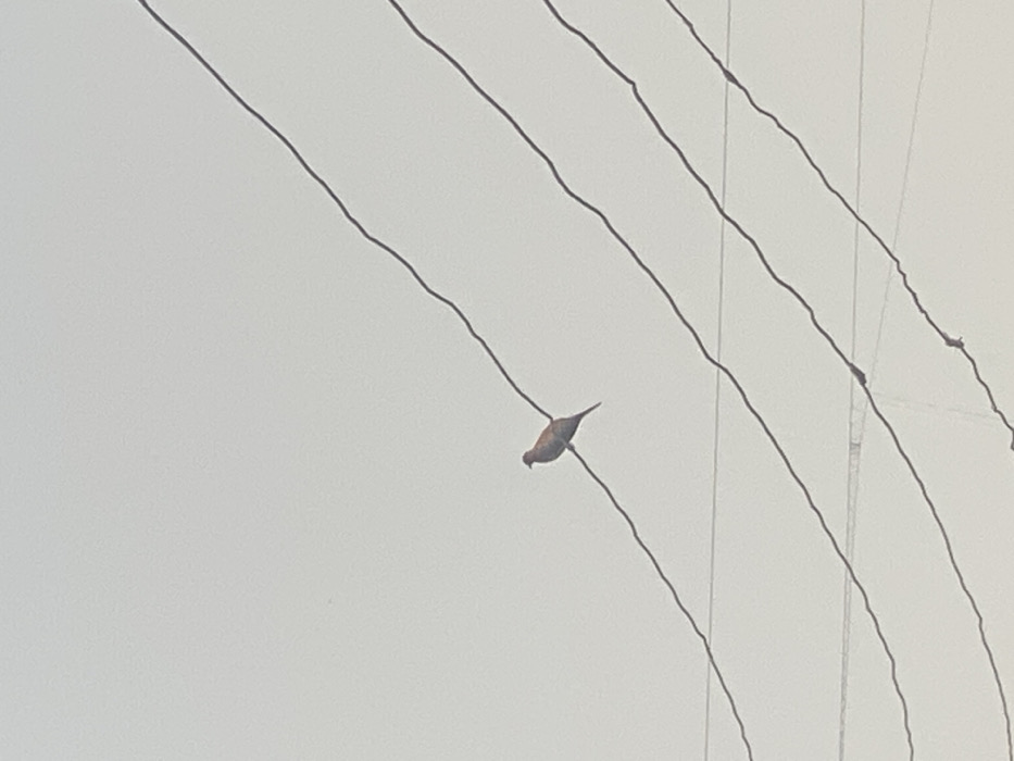 - "A solitary bird, possibly a dove, perches on one of several dark, drooping power lines against a hazy, light gray sky" by FM-BPBpZ2, licensed under CC BY 4.0