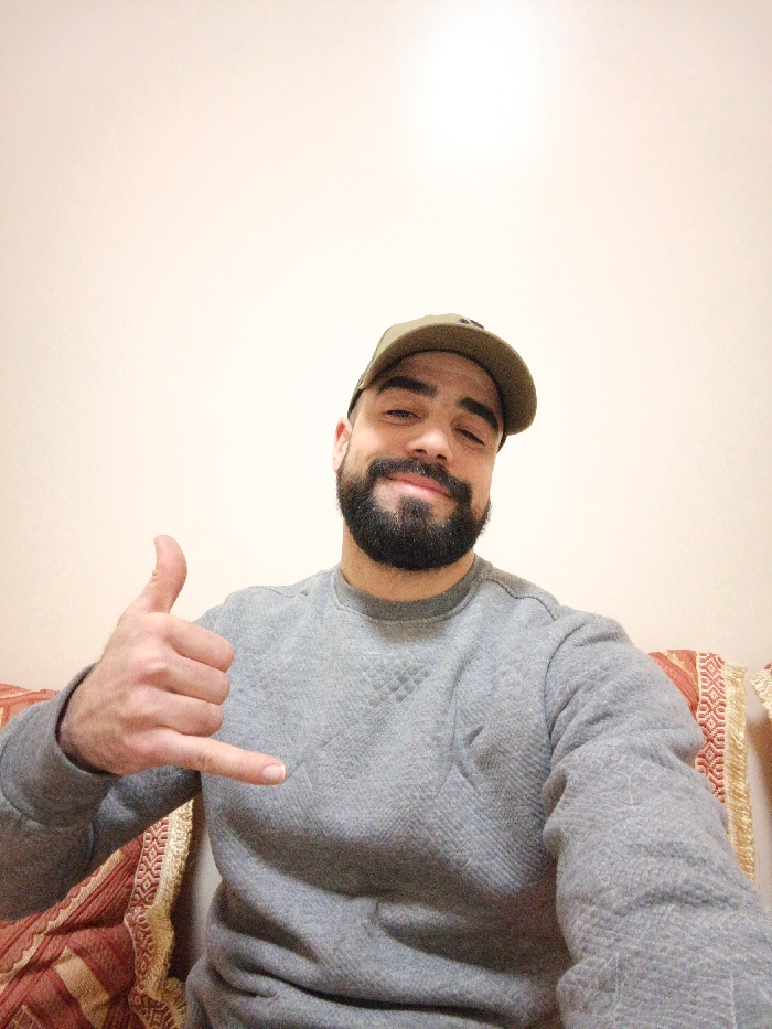 - "A man with a beard and a baseball cap is smiling while giving the "hang loose" hand gesture" by FM-50aIG2, licensed under CC BY 4.0