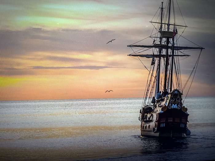 - "The image displays a large, three-masted sailing vessel, appearing to be a replica galleon, on calm water under a vibrant sky" by FM-BolH83, licensed under CC BY 4.0