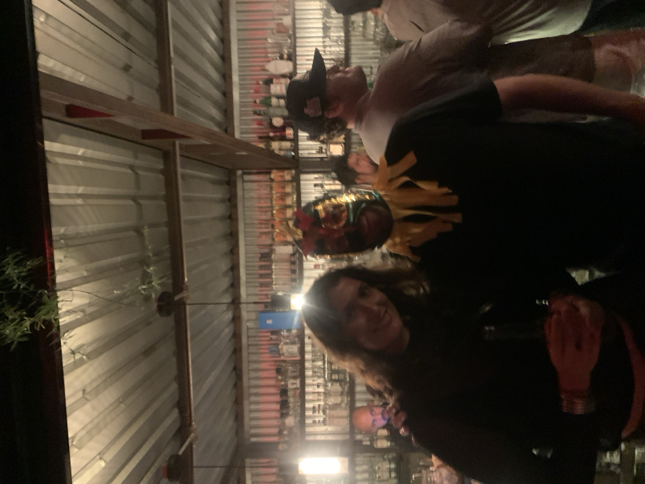 The image captures a nighttime scene within a bar or covered outdoor establishment in Mexico City, Mexico