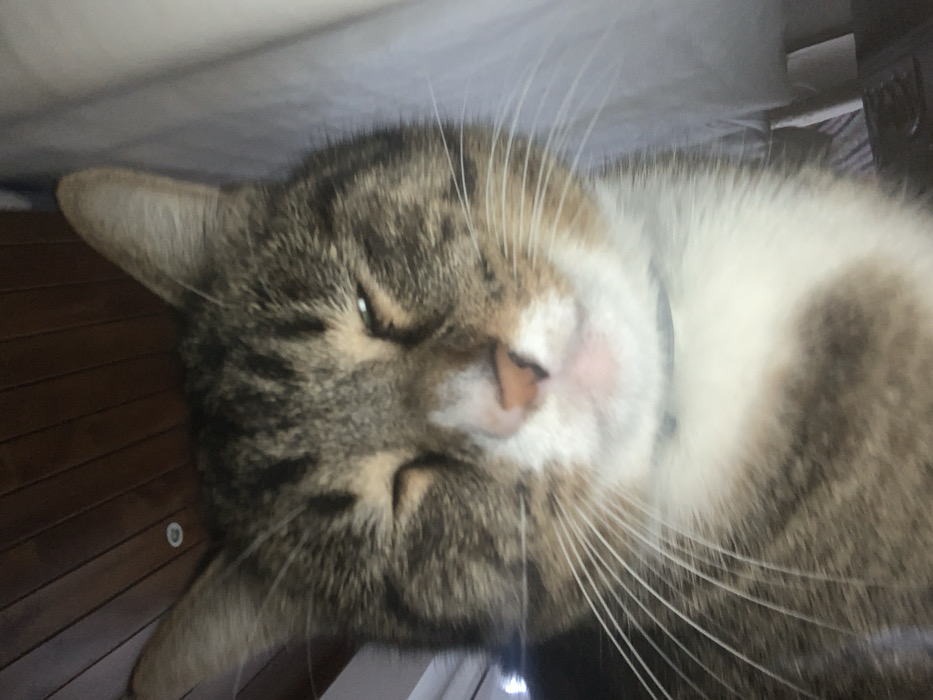 - "A close-up, front-facing image features a domestic feline, primarily a tabby cat with brown and black stripes, a white muzzle, and a white chest, appearing to wear a dark, thin collar" by FM-Wg1Ah2, licensed under CC BY 4.0