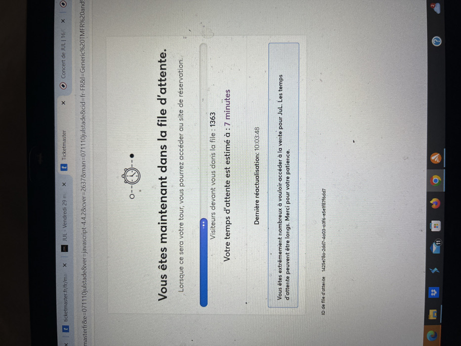 - "The image displays a computer monitor showing a Ticketmaster France website page, indicating an active online waiting queue for concert tickets" by FM-VkZGB2, licensed under CC BY 4.0