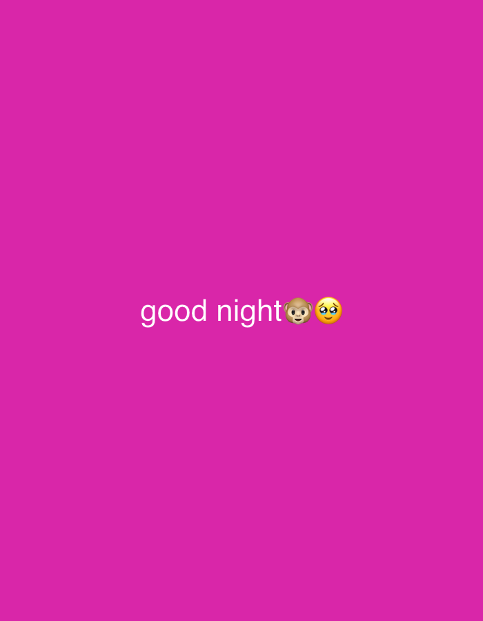 The image displays a solid fuchsia background. White lowercase text reading "good night" is centered horizontally slightly above the vertical midpoint. Immediately to the right of the text, a brown monkey face emoji is positioned, followed by a yellow pleading face emoji. No individuals, physical objects, or real-world environmental features are present; the scene is a purely digital composition. The geographical context for this digital graphic is Ouislane, Morocco.
