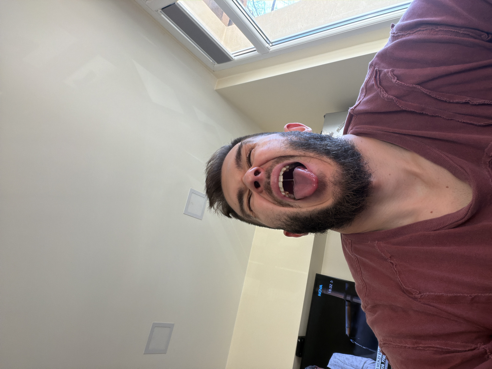 - "A man with a dark beard, wearing a maroon long-sleeved shirt, is sticking his tongue out at the camera" by FM-3NxnB2, licensed under CC BY 4.0