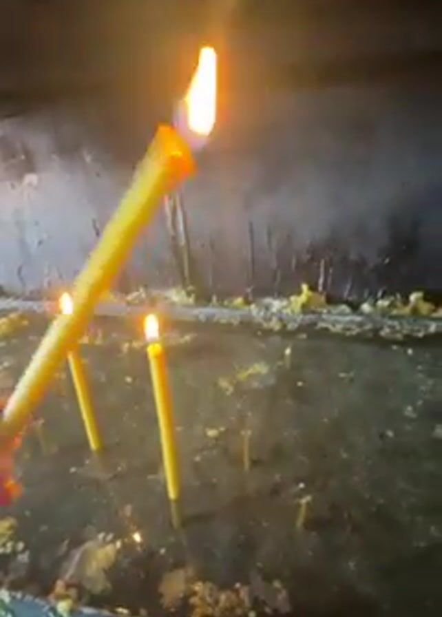 - "A person holding two lit yellow candles uses them to light a third yellow candle standing in a basin filled with water and candle wax" by FM-fSbZr2, licensed under CC BY 4.0
