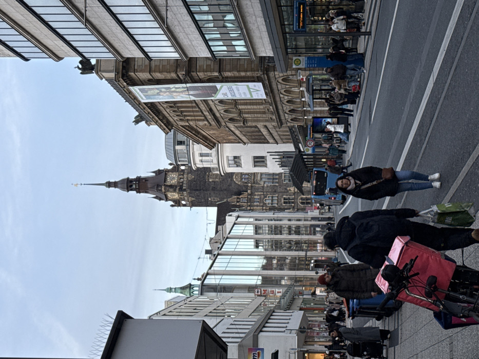 - "A street scene features a tall, ornate clock tower dominating the skyline, situated among modern buildings" by FM-xKTK43, licensed under CC BY 4.0