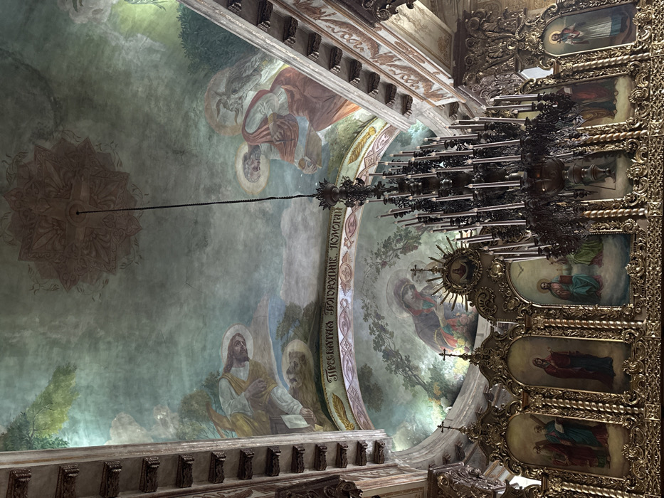 This image captures the richly adorned interior of an Orthodox church in Местечко Раифа, Russia