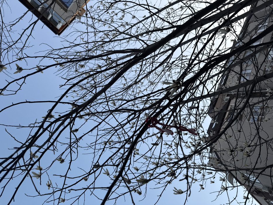- "The image presents an upward perspective of a deciduous tree, identified as a magnolia based on its nascent flower buds, against a clear, bright blue sky in Varna, Bulgaria" by FM-wRUHr1, licensed under CC BY 4.0