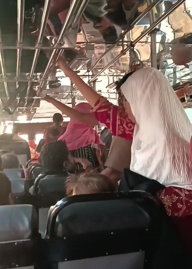 The video depicts the interior and exterior of a moving bus