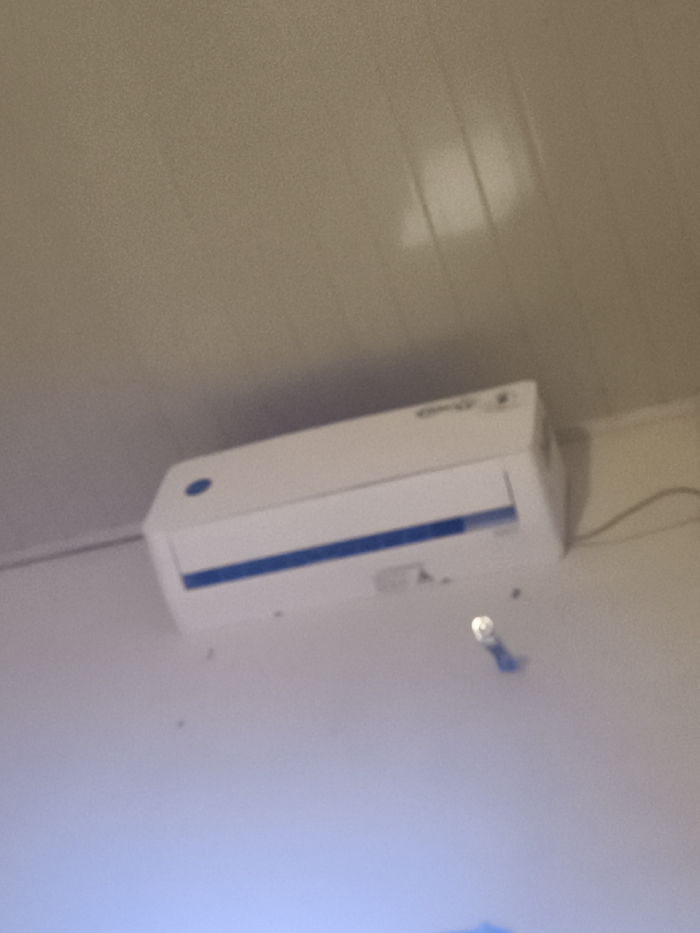 - "In Lhokseumawe, Indonesia, an interior scene depicts a wall-mounted white split-system air conditioning unit positioned on a light-colored wall" by FM-RPcK62, licensed under CC BY 4.0