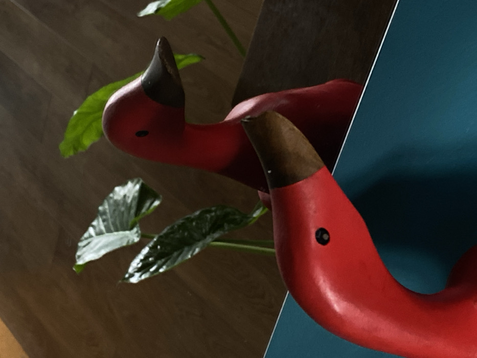 - "The scene depicts two red wooden duck figurines indoors in Dobri dial, Bulgaria" by FM-PFEbq2, licensed under CC BY 4.0