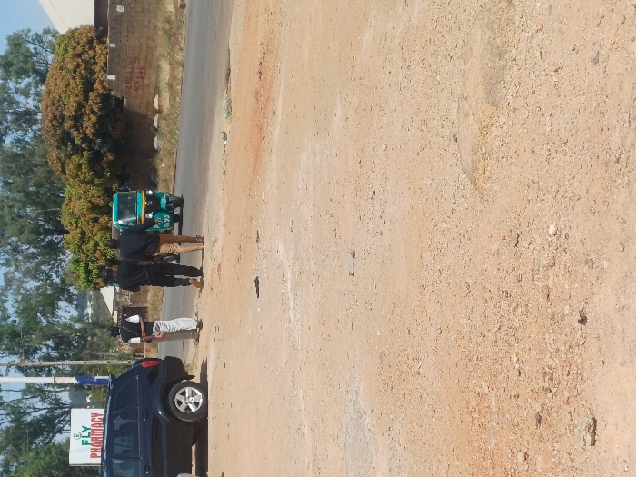 The image presents an outdoor street scene captured during daylight in Angwan Rogo, Jos, Nigeria