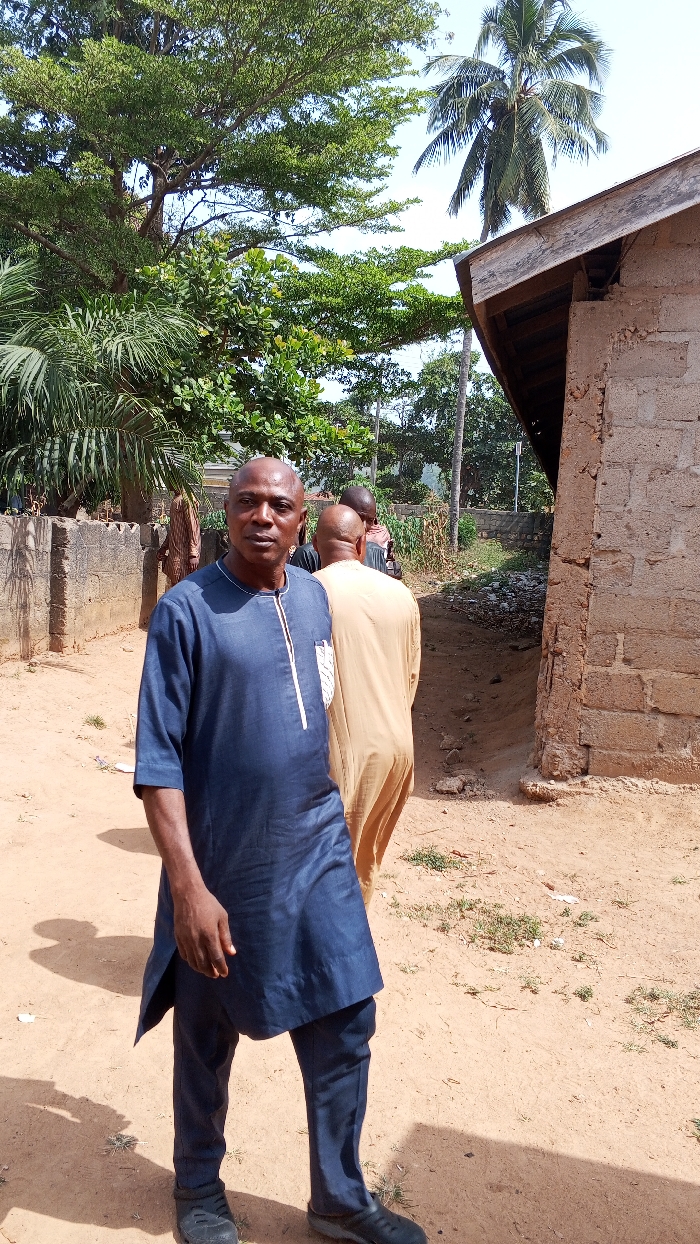The scene depicts an outdoor setting in Egbedi, Nigeria, on a sunny day