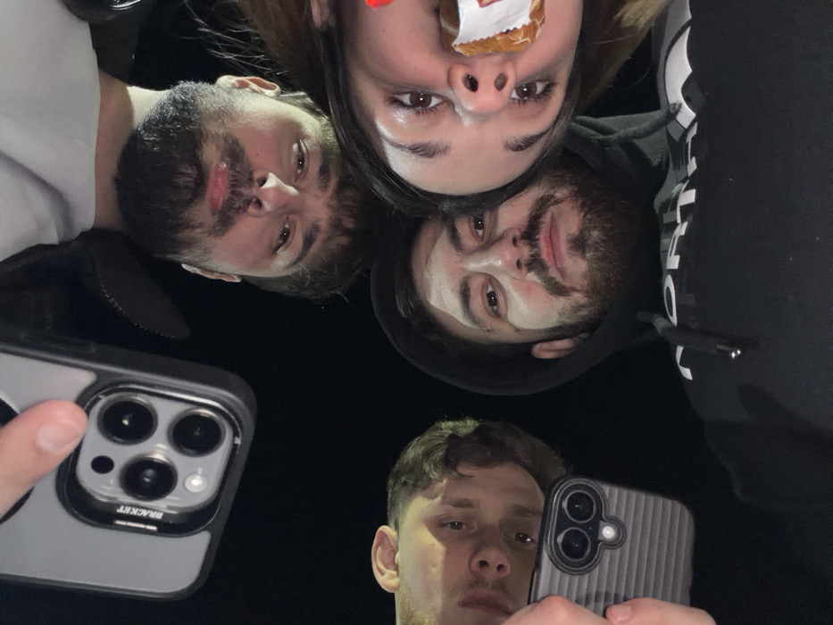 - "The image depicts four individuals in close proximity, looking downwards towards the camera, against a uniformly dark, non-descript background" by FM-x5wPI3, licensed under CC BY 4.0
