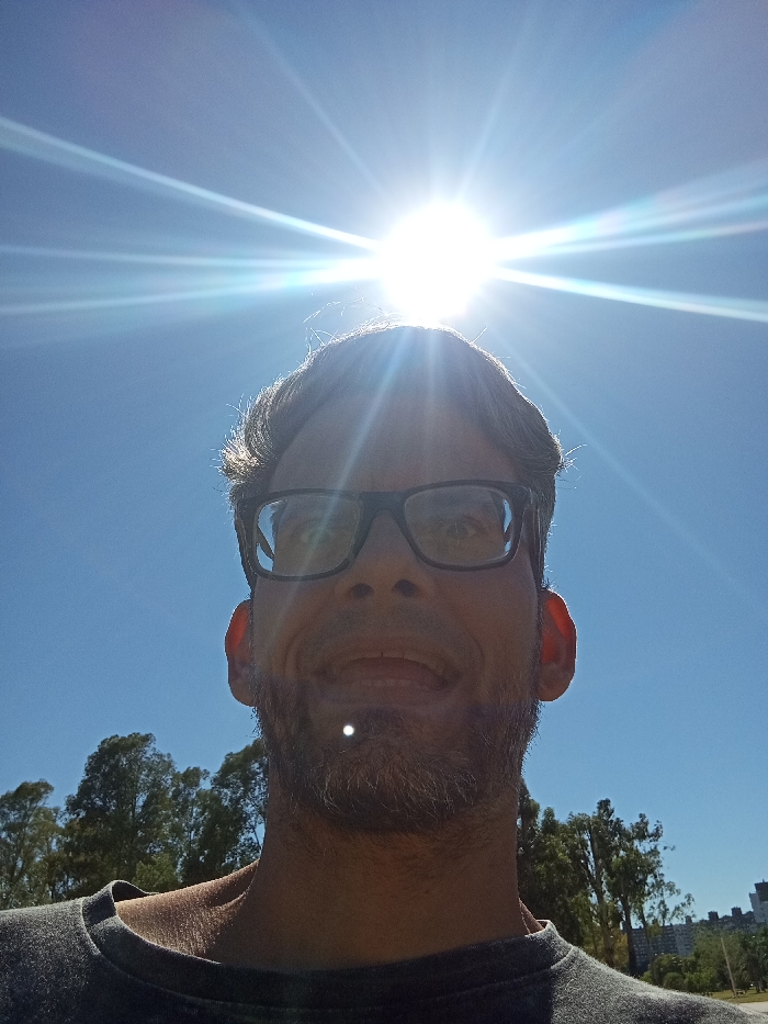 - "A man in eyeglasses smiles up at the sun" by FM-k5Dk42, licensed under CC BY 4.0