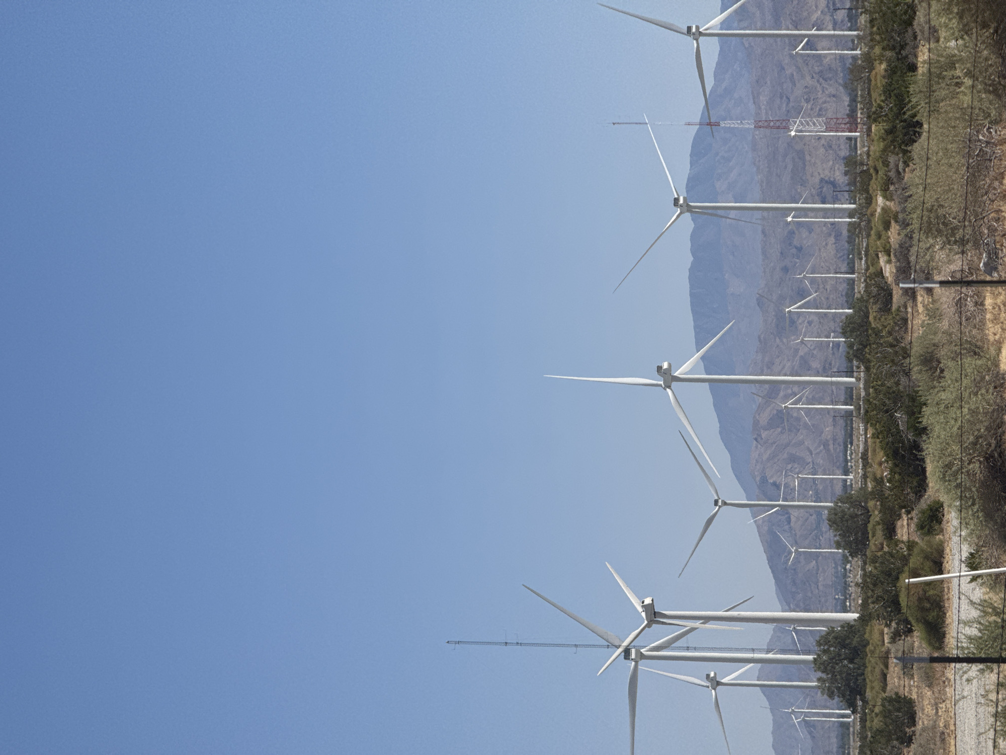 The image depicts a wind farm near Palm Springs, California, USA