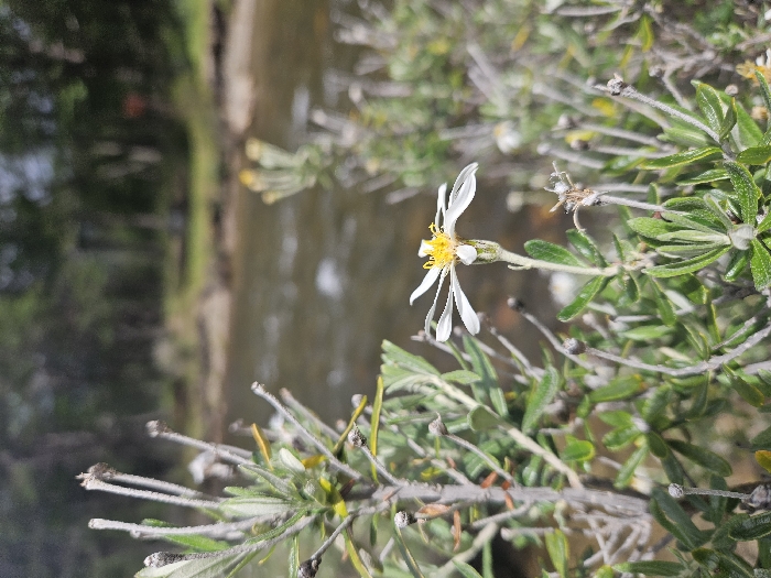 - "A white flower with a yellow center and white petals is prominently featured in the foreground, emerging from a dense growth of small-leaved, grey-green shrubs" by FM-f4xc73, licensed under CC BY 4.0