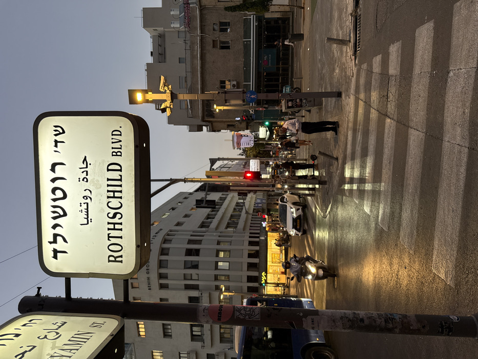 - "The image depicts an urban street scene at dusk or early evening in Tel Aviv, Israel, specifically at the intersection of Rothschild Boulevard and Yemin Street" by FM-LMNxv1, licensed under CC BY 4.0
