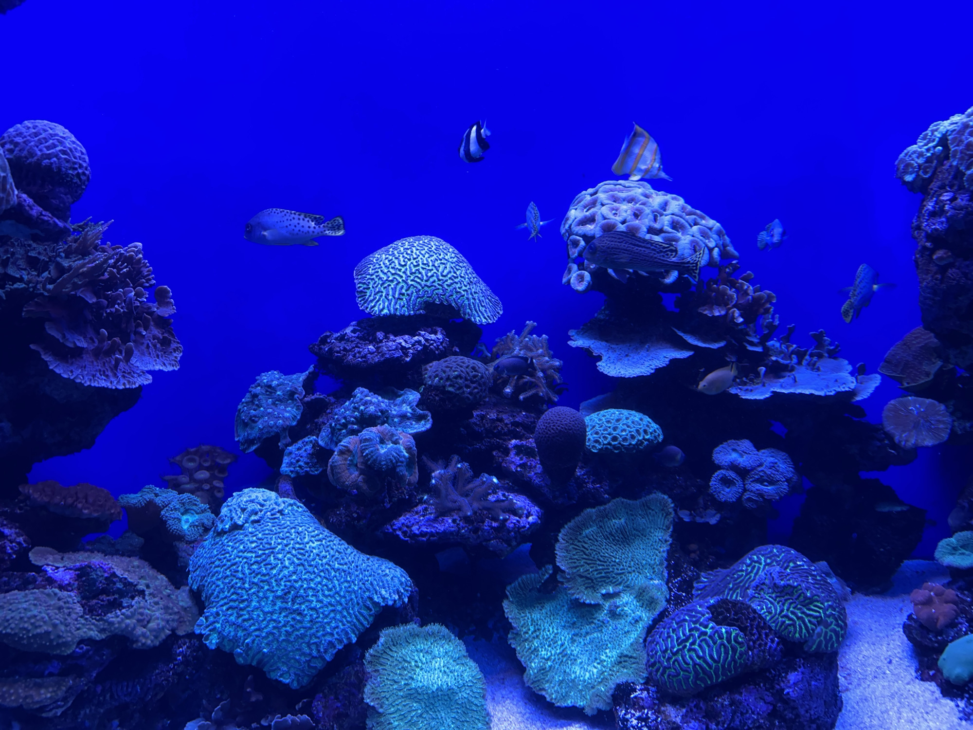 - "The image depicts an underwater scene, likely an aquarium exhibit, showcasing a variety of marine life and coral formations" by FM-AoVrg1, licensed under CC BY 4.0