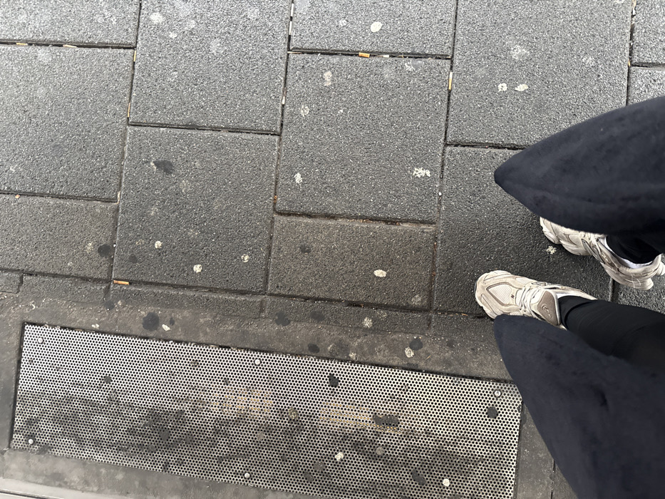 - "The image captures a downward-angle, first-person perspective of an individual's lower legs and feet on an urban sidewalk in Frankfurt, Germany" by FM-k63fK2, licensed under CC BY 4.0