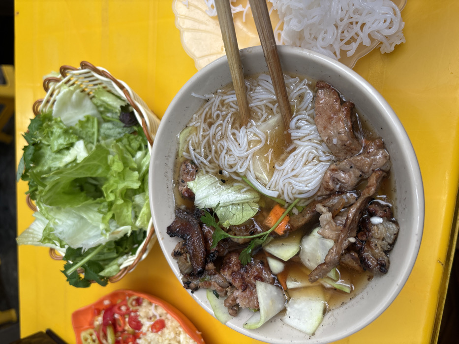 - "Bun cha, a Vietnamese dish, features grilled pork in a light broth with rice noodles and chopsticks" by FM-bmo3E3, licensed under CC BY 4.0
