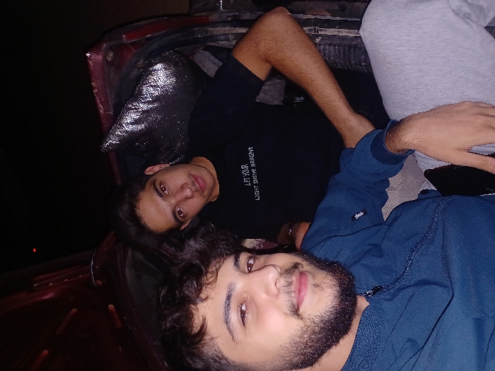 - "Two young adult males are depicted in a low-light environment, appearing to be situated within the interior of a vehicle, possibly a car, given the dark red metallic structure visible behind them" by FM-hmmxi2, licensed under CC BY 4.0