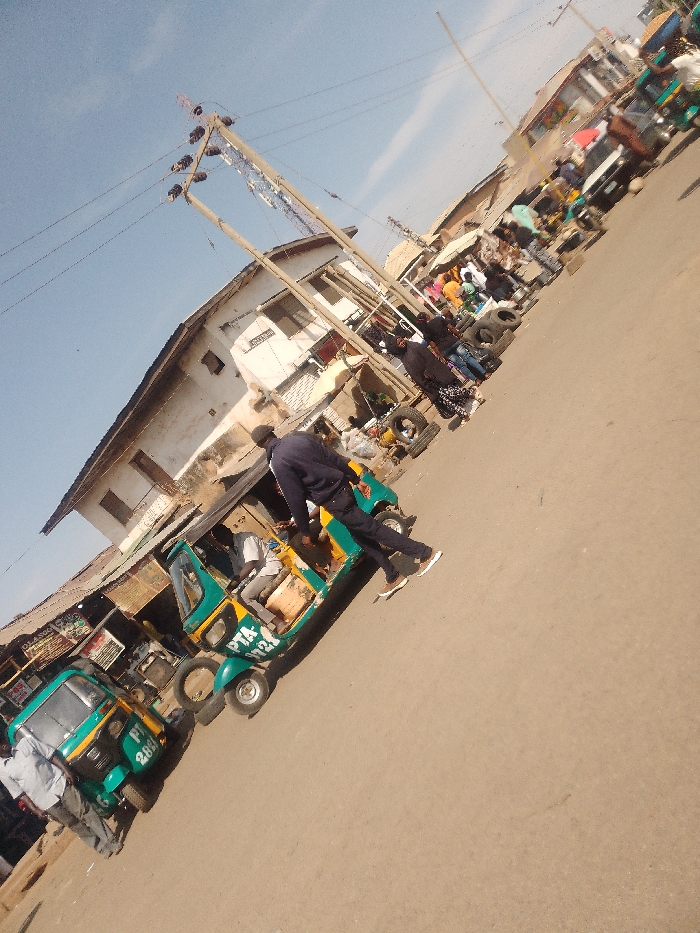 - "This image depicts a bustling street scene in the city of Jos, Nigeria, under a clear, bright blue sky" by FM-p2M1d2, licensed under CC BY 4.0