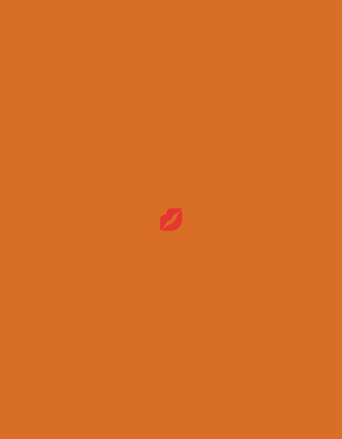 The image displays a solid, uniform orange background. Centered within this orange field is a small, stylized red graphic depicting puckered lips, resembling a kiss mark. No other subjects, objects, people, actions, or environmental details are visible. This scene is contextualized as occurring in Jizzakh, Uzbekistan.