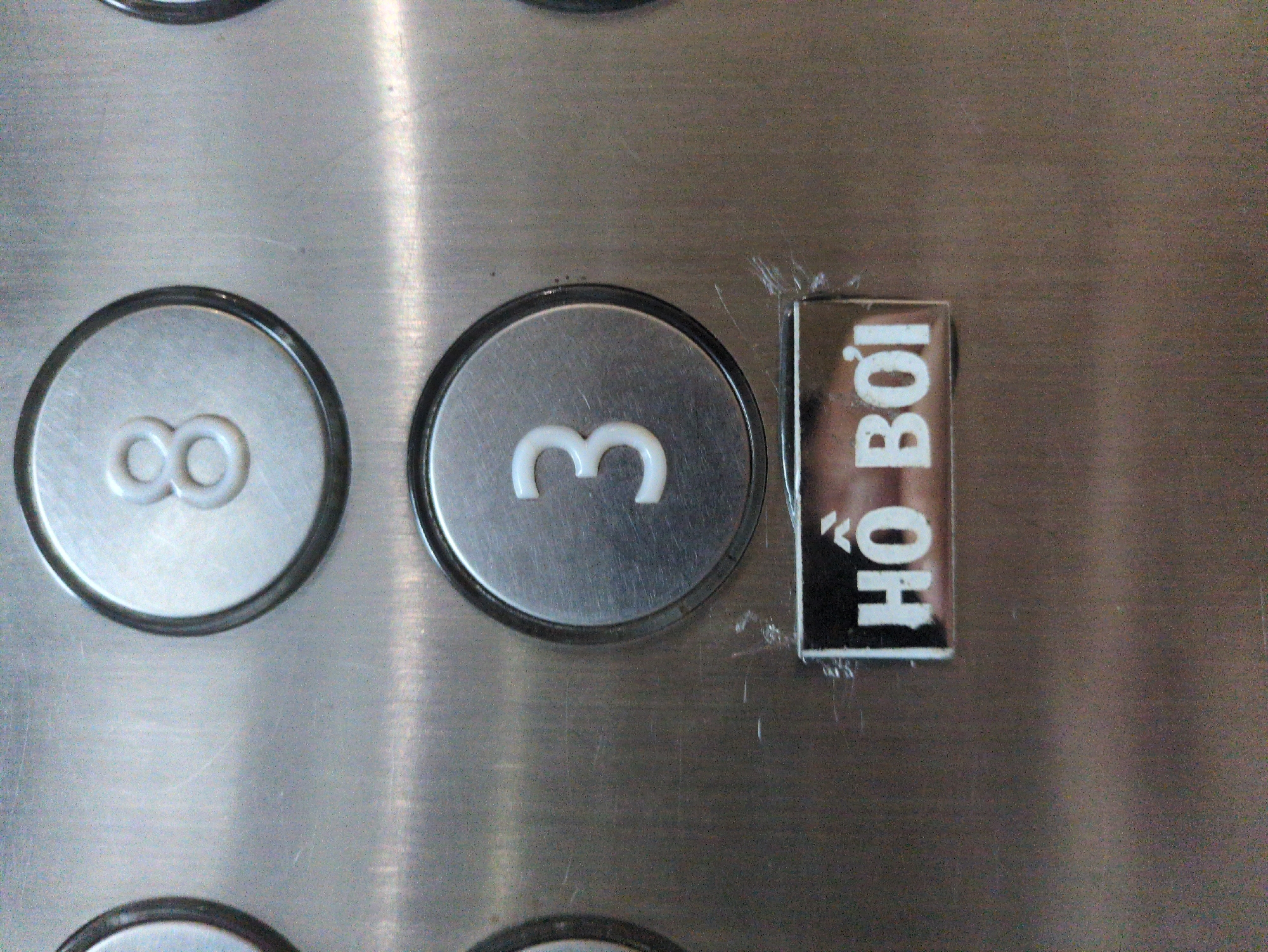 Close-up of an elevator panel with the buttons for floors "∞" and "3"