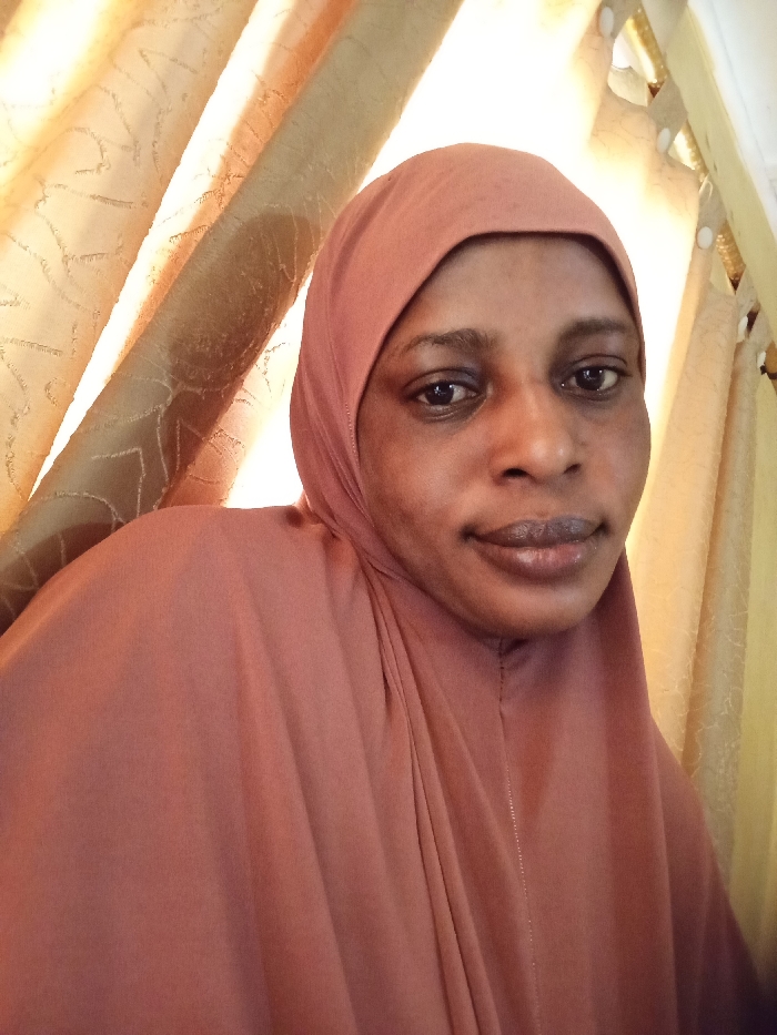 This image depicts an adult female, located indoors in Narayi, Nigeria, facing the camera directly