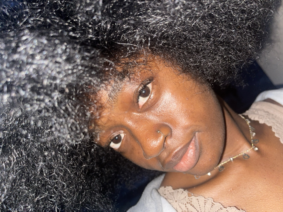- "A close-up photo features a woman with dark skin and afro hair" by FM-pMUDD3, licensed under CC BY 4.0