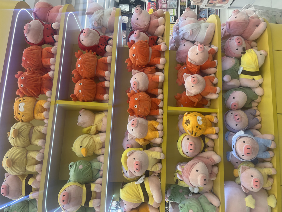 - "A yellow shelving unit is filled with an array of pig plush toys dressed in different costumes" by FM-KmYti1, licensed under CC BY 4.0