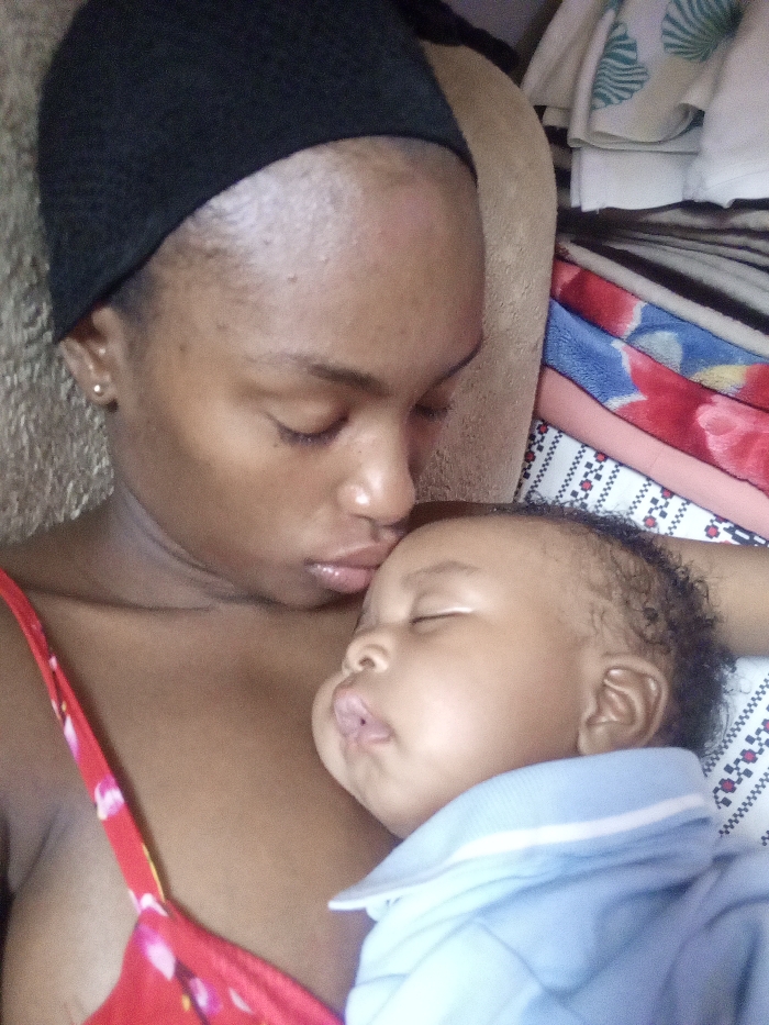 The image captures an adult female and an infant in close proximity, likely indoors in Jos, Nigeria
