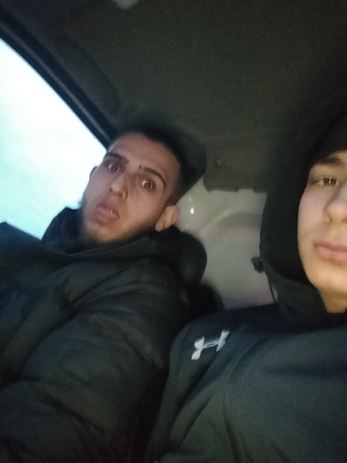 This image captures two males seated within the interior of a vehicle, in what is stated to be Stroevo, Bulgaria