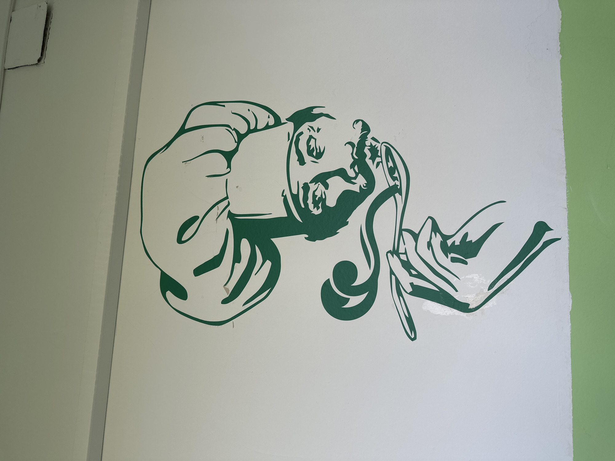 green graphic on a white wall