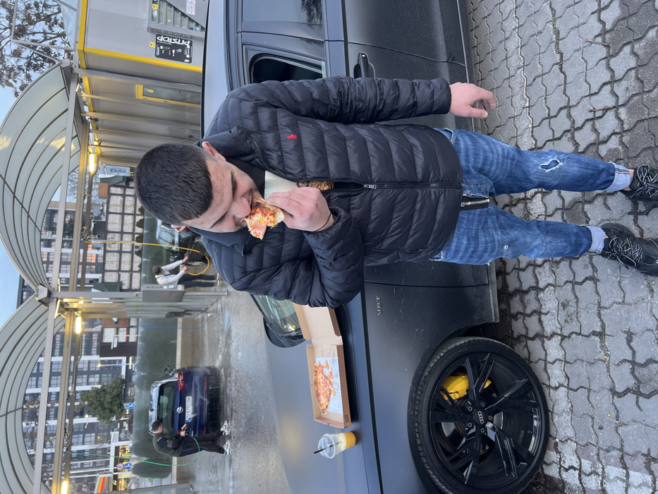- "A young male is depicted standing in the foreground, consuming a slice of pizza" by FM-norkv2, licensed under CC BY 4.0
