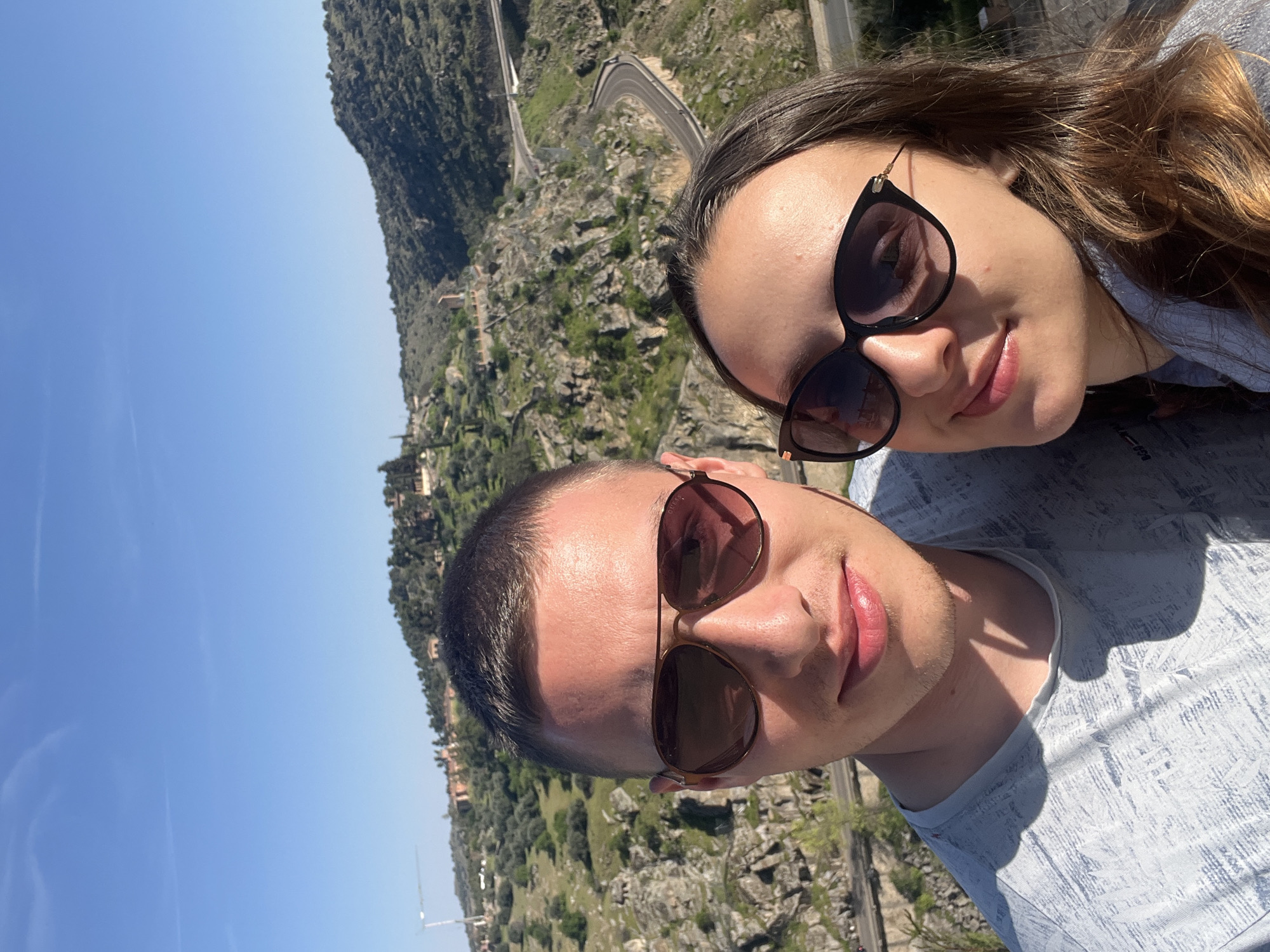 A self-portrait captured at an elevated viewpoint overlooking the Tagus River valley in Toledo, Spain