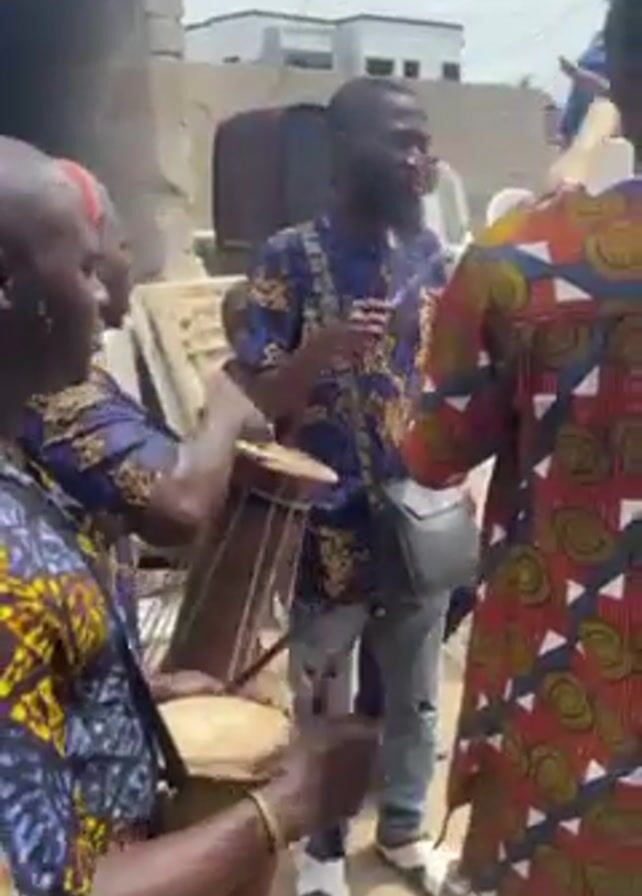 group of African musicians performing outdoors, seemingly in a residential neighborhood