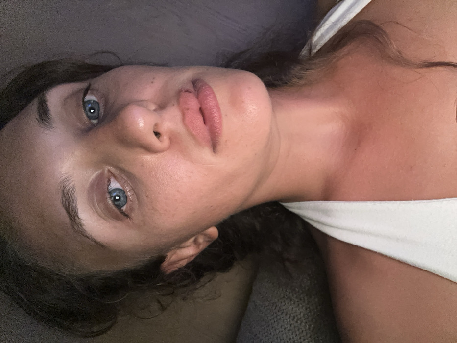 - "A close-up, chest-up image shows a female individual with fair skin, blue eyes, and dark, curly hair" by FM-8PR5n2, licensed under CC BY 4.0