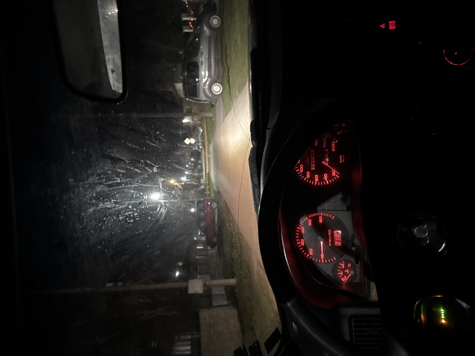 - "The image captures a nighttime street scene in Sandrovo, Bulgaria, viewed from the driver's perspective inside a stationary vehicle" by FM-of71n2, licensed under CC BY 4.0