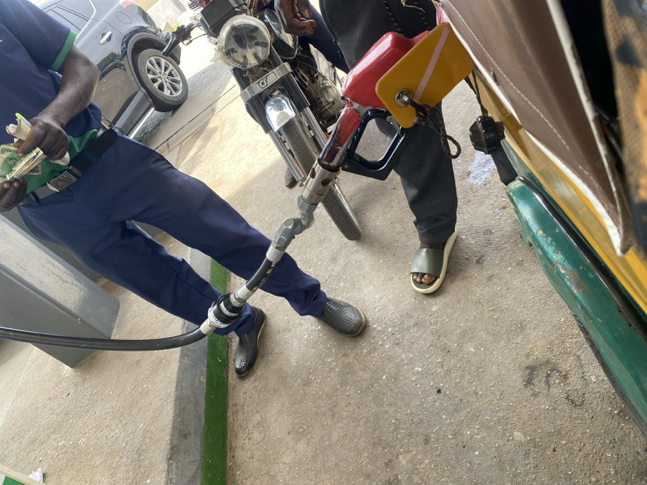 This image depicts a transaction at a fuel station in Jos, Nigeria